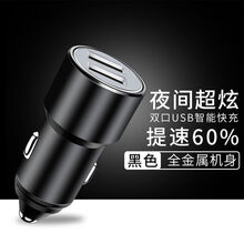 车载快充头车充手机充电器 车载充电器快充一拖二USB车充多功能点烟器手机充电转换插头通用 黑【快充金属版】 单买车充