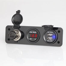 新款车载充电器可点烟器电压双USB手机车充3孔汽车改装三合一面板 红光