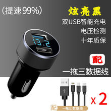车载充电器快充手机usb汽车用点烟器转换插头快速一拖二闪充 配【1.2米】一拖三快充数据线X2 QC3.0【炫亮黑】6.2A数显闪充