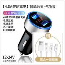 车载点烟器充电器大众途观L 途岳 T-ROC探歌手机快充转换插头车充一拖二快充双USB 【数显快充检测版】银色带氛围灯+三合一数据线