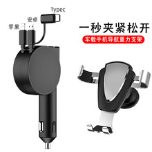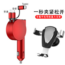 车载充电器伸缩数据线一拖三汽车用三合一闪充苹果PD华为快充 黑色8代+手机支架 闪充+快充+PD