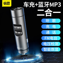 汽车mp3蓝牙播放器车载充电器车充点烟器一拖二迷你双usb多功能手机快充充电头车用电源转换器插 能量柱车载蓝牙MP3充电器-银色