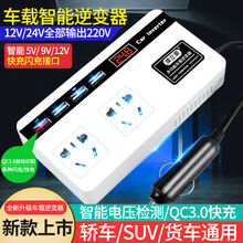 车载逆变器车载1224通用转220多功能车用电源插座转换手机充电器变电器转化器 全新升级版白色【12V24V通用】