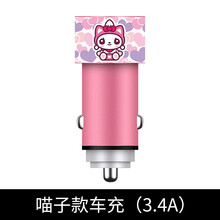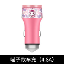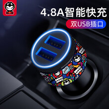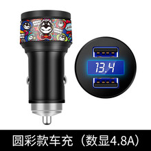 车载充电器 车充点烟器 一拖二双usb快充 应急安全锤接触头 手机平板通用电源插头汽车用品 圆彩款【安全锤4.8A】