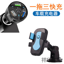 适用于前挡风玻璃大货车挖掘机汽车载手机支架吸盘式导航支撑通用 3usb车充+升级加固款蓝色玻璃吸盘款