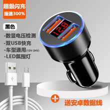 车载充电器快充一拖二点烟器车用手机充电器转换插头车充电器闪充 送【简航品牌】安卓数据线 6A数显闪充版【暗夜黑】提速300%