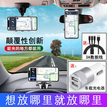新款多功能懒人手机支架神器高档汽车仪表盘后视镜导航仪车载通用 手机支架【多位置可夹】 【主图款支架/赠数据线+车充】
