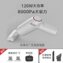 无线吸尘器车用手持大吸力车载吸尘器无线充电家车两用 珍珠白【8000pa】+2个滤芯+收纳包