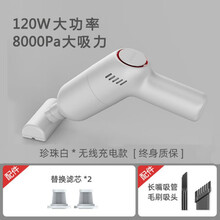 车载吸尘器无线充电大功率强力迷你汽车内家用小型手持式 珍珠白【强吸力+滤芯*2+基础配件】