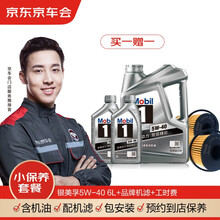 京车会美孚机油汽车小保养套餐+品牌机滤+工时(两次)银美孚1号 全合成 5W-40 SN级 6L(买一赠一门店现货)