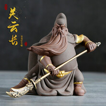 陶云尚(tao Yun Shang) 美髯公关羽关云长持刀紫砂茶宠摆件 精品可养车载摆件 关云长(温酒斩华雄)