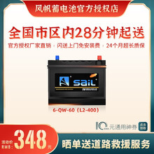 【风帆SaiL蓄电池授权店】L2-400同6-QW-60免维护12V60Ah汽车电瓶 全国市区内闪送上门免工时费安装-旧电瓶收回 别克 君越/君越eAssist/君威/昂科拉